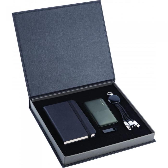 Çoklu Şarj Kablosu 5.000 mAh. Powerbank Metal Usb Bellek 16 GB. 9 x 14 cm. Termo Deri Defter Suni Deri Kutu Ebat : 26 x 21 x 3,7 cm